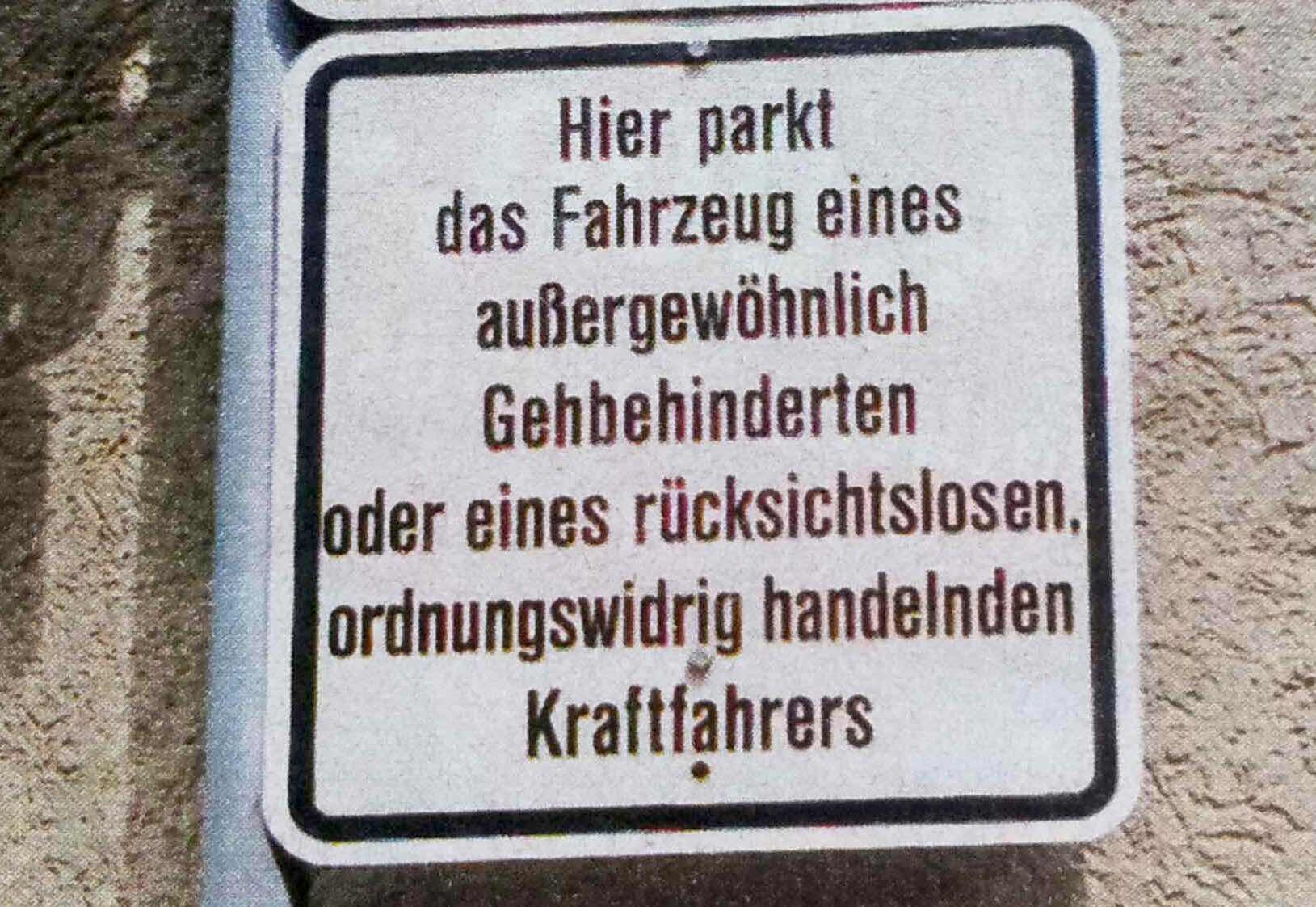 Rollstuhlfahrer Galonke und sein rücksichtsloser Nachbar Ragentien nahmen die Vorschrift sehr ernst und wechselten sich beim Parken regelmäßig ab. Fotografiert in Berlin von Andreas Pronin Zum nächsten Fundstück: Noro-Gastspiel