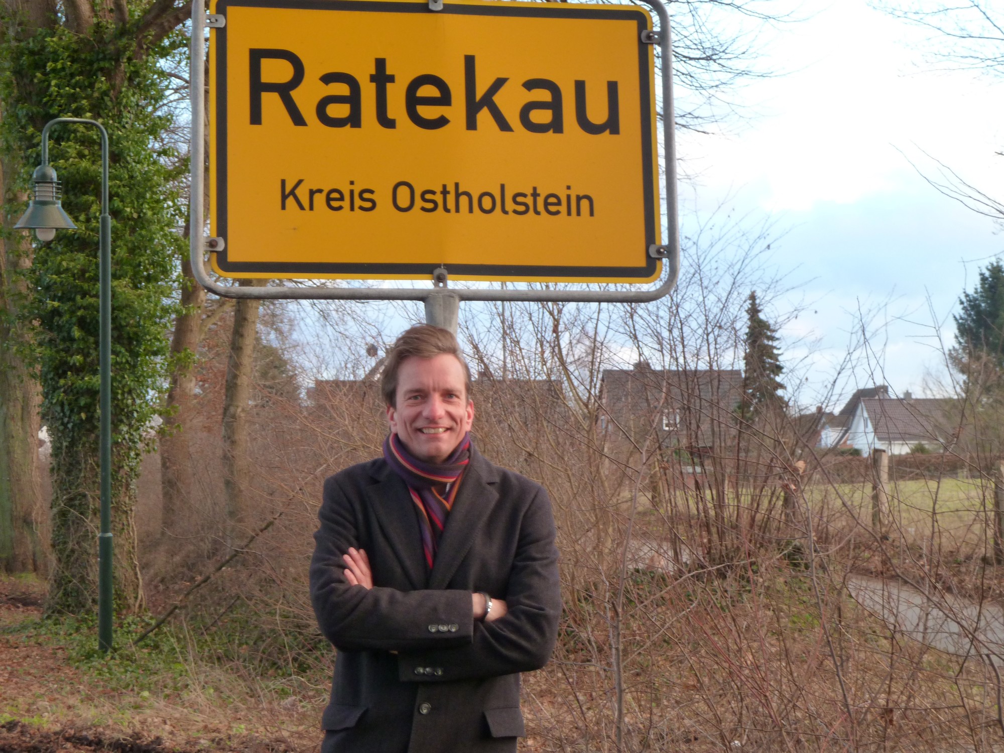 Bastian Sick mit RTL Regional unterwegs in seinem ostholsteinischen Heimatdorf Ratekau.