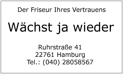 „Hübsche Idee, aber vermutlich zu intellektuell!“, sagt Henry. „Der Kunde braucht einfache Begriffe; solche, die ihm schon aus weiter Entfernung zurufen: Schau hair, ich bin ein Friseur, und ich bin witzig!“ – „Du meinst so etwas wie ,Schnittstelle‘?“, frage ich. Henry nickt. „Oder wie ,Hairkules – Ihr starker Friseur‘?“ Henry kichert. „Oder wie ,Kaiserschnitt‘?“ Henry stöhnt laut auf. Henry, beHAIRsche dich“, ermahne ich meinen Freund, „du verlierst ja völlig die Fasson!“ Gerade als wir aufbrechen wollen, beugt sich der Gast vom Nebentisch zu uns herüber und sagt: „Entschuldigt, wenn ich mich einmische, aber wenn ihr einen wirklich guten Friseur sucht, dann kann ich euch diesen hier empfehlen! Mit dem könnt ihr nichts falschen machen!“ Lächelnd reicht er uns eine Geschäftskarte. Henry schaut drauf und bricht in schallendes Gelächter aus. „Was ist denn so komisch?“, frage ich. „Ein prima Tipp! Mit dem können wir nichts falsch machen“, gluckst Henry, „der macht zumindest keine falschen Versprechungen!“ Er reicht mir die Karte, und ich lese: