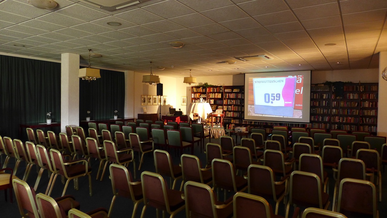 Das Publikum war einfach bezaubernd. Schon 40 Minuten vor Beginn hatten sich die ersten Damen vor dem Eingang eingefunden und ihre Rollatoren in Stellung gebracht. „Wir freuen uns schon seit Tagen auf Sie!“, wurde mir strahlend versichert. Die Lesung verlief – dank der gut vorbereiteten Haustechnik – reibungslos, und die Reaktionen des Publikums, das aufmerksam lauschte und immer wieder herzhaft lachte, sorgten dafür, dass ich mich auf dem Podium sehr wohl fühlte. Beim anschließenden Signieren blickte ich in ausnahmslos zufriedene, dankbare Gesichter. Eine Dame sagte, so gut habe sie sich schon lange nicht mehr amüsiert, was ich kaum glauben konnte, und eine andere wollte wissen, wo sie wohl den Text zu meinem Goethe-Lied finden könne. „Haben Sie Zugriff aufs Internet?“, fragte ich sie. „Nein!“, erwiderte sie mit einem bedauernden Lächeln, das mir die Abwegigkeit meiner Frage bewusst werden ließ. Nach einer kurzen Pause fügte sie hinzu: „Aber meine Kinder!“ Sollten also die Kinder dieser liebenswürdigen Bewohnerin des „Rosenhofs“ meine Seite besuchen, so sei hier für sie der Link zum Text des Liedes „Würde Goethe heut noch leben“.