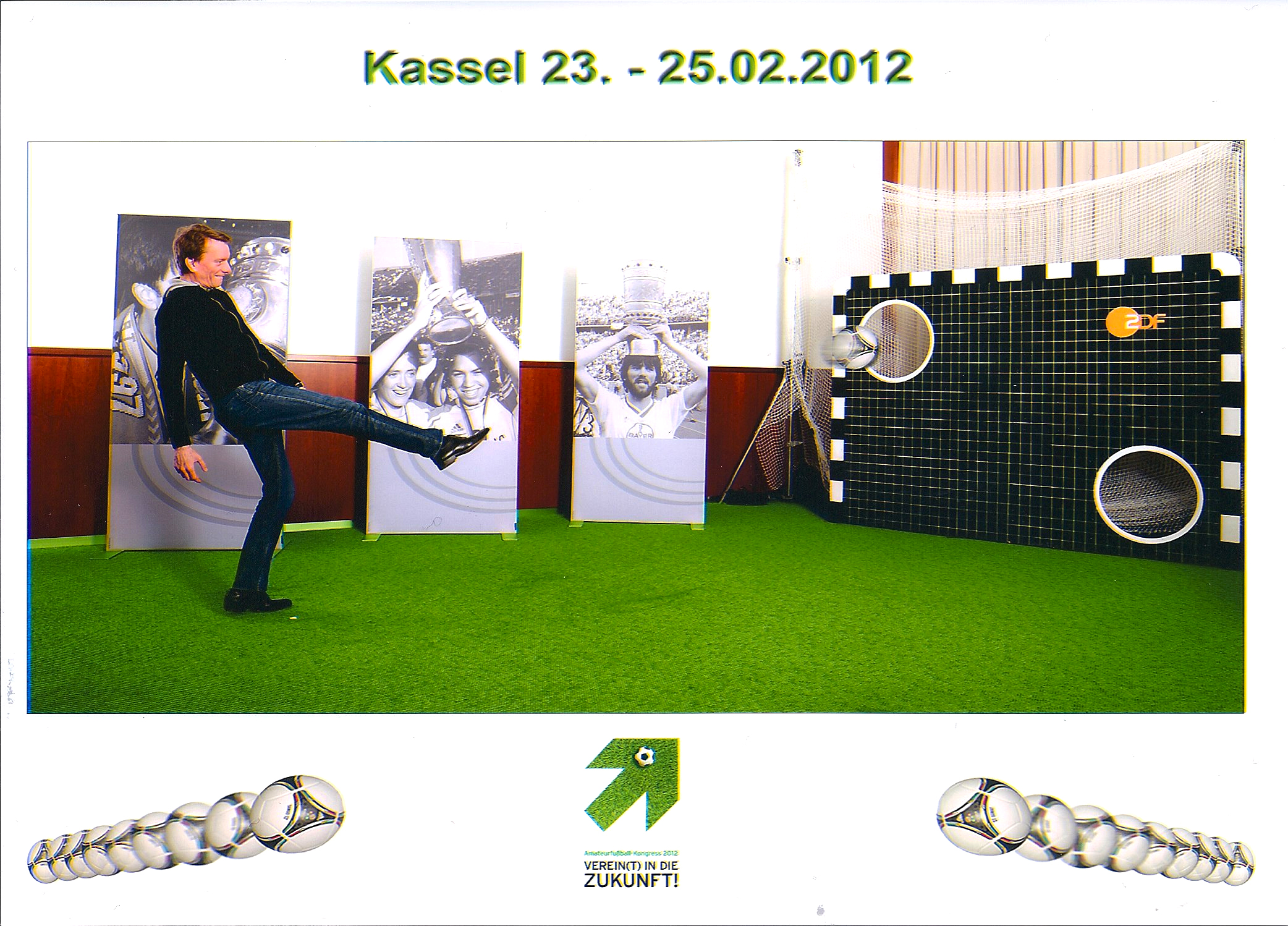 Tor! Tor! Toooor! Was mir auf dem Fußballfeld nie geglückt ist, gelingt mir heute beim DFB-Kongress in Kassel. Ich ziele auf die Torwand des ZDF-Sportstudios, und der Ball geht rein!