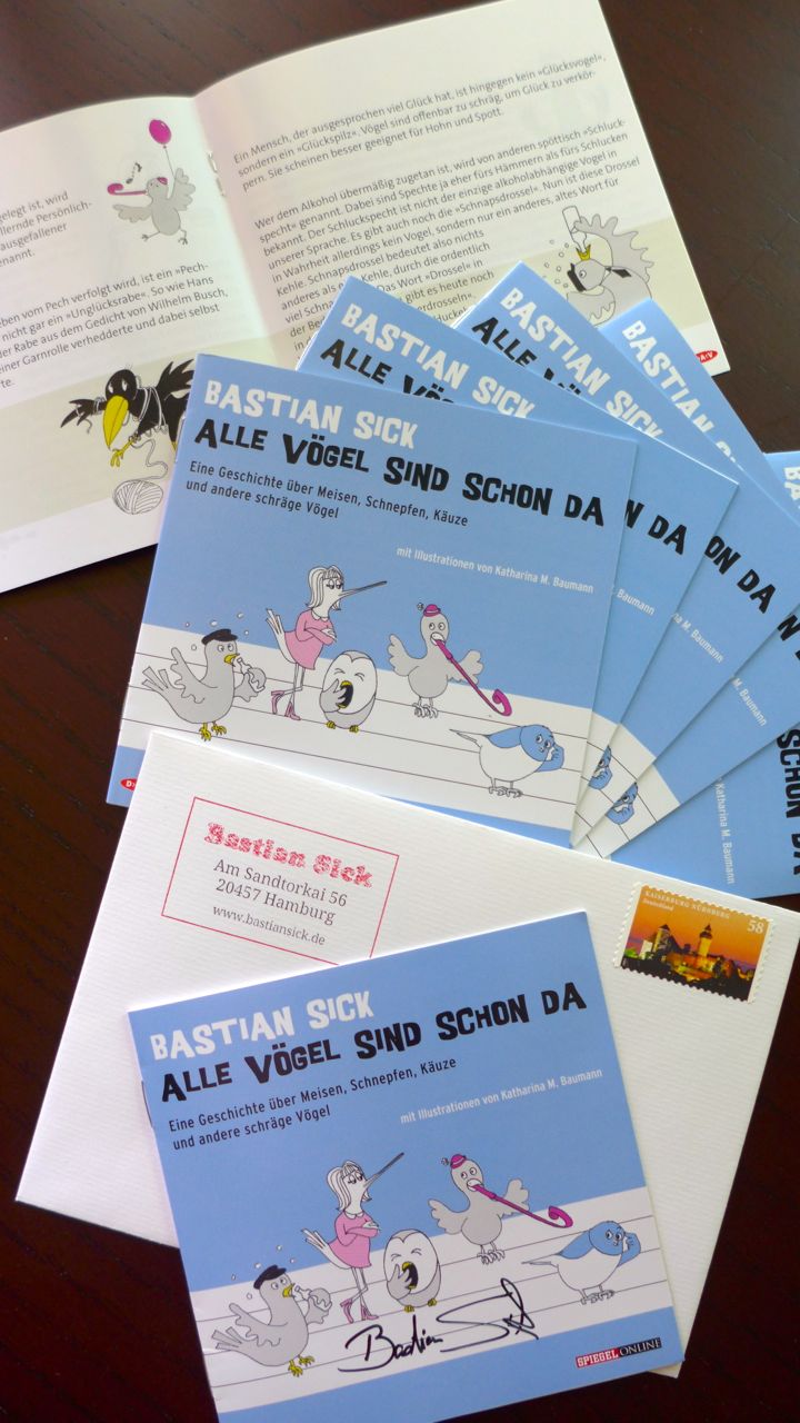 Liebe Leserinnen und Leser! Anlässlich des 10. Jubiläums meiner Kolumne und des Erscheinens des 5. Bands aus der „Dativ“-Reihe gibt es für Sie die Möglichkeit, ein kostenloses, signiertes Exemplar des Booklets zum aktuellen Hörbuch zu bekommen! Es enthält die Geschichte „Alle Vögel sind schon da“ mit zahlreichen liebevollen Illustrationen von Katharina M. Baumann.