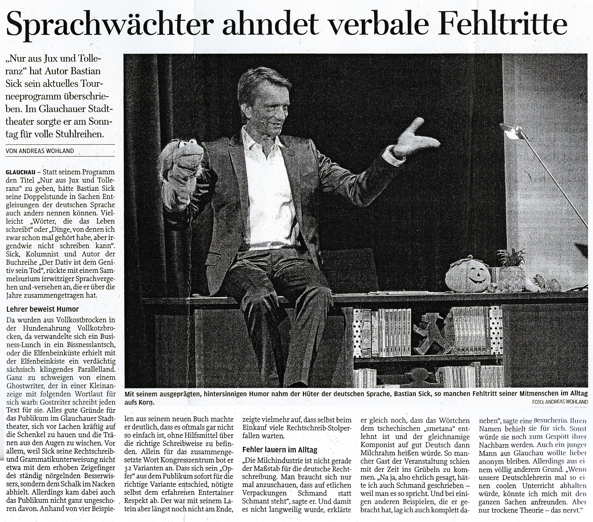 17.04.2012, Freie Presse Bastian Sick 17. April 2012 Schreiben Sie einen Kommentar 952 Besucher Sprachwächter ahndet verbale Fehltritte Teilen Facebook Twitter